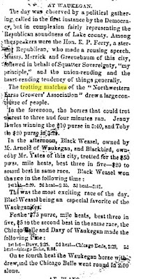 McKay's racetrack, Waukegan, circa 1878. Note the county courthouse in the distance at center.